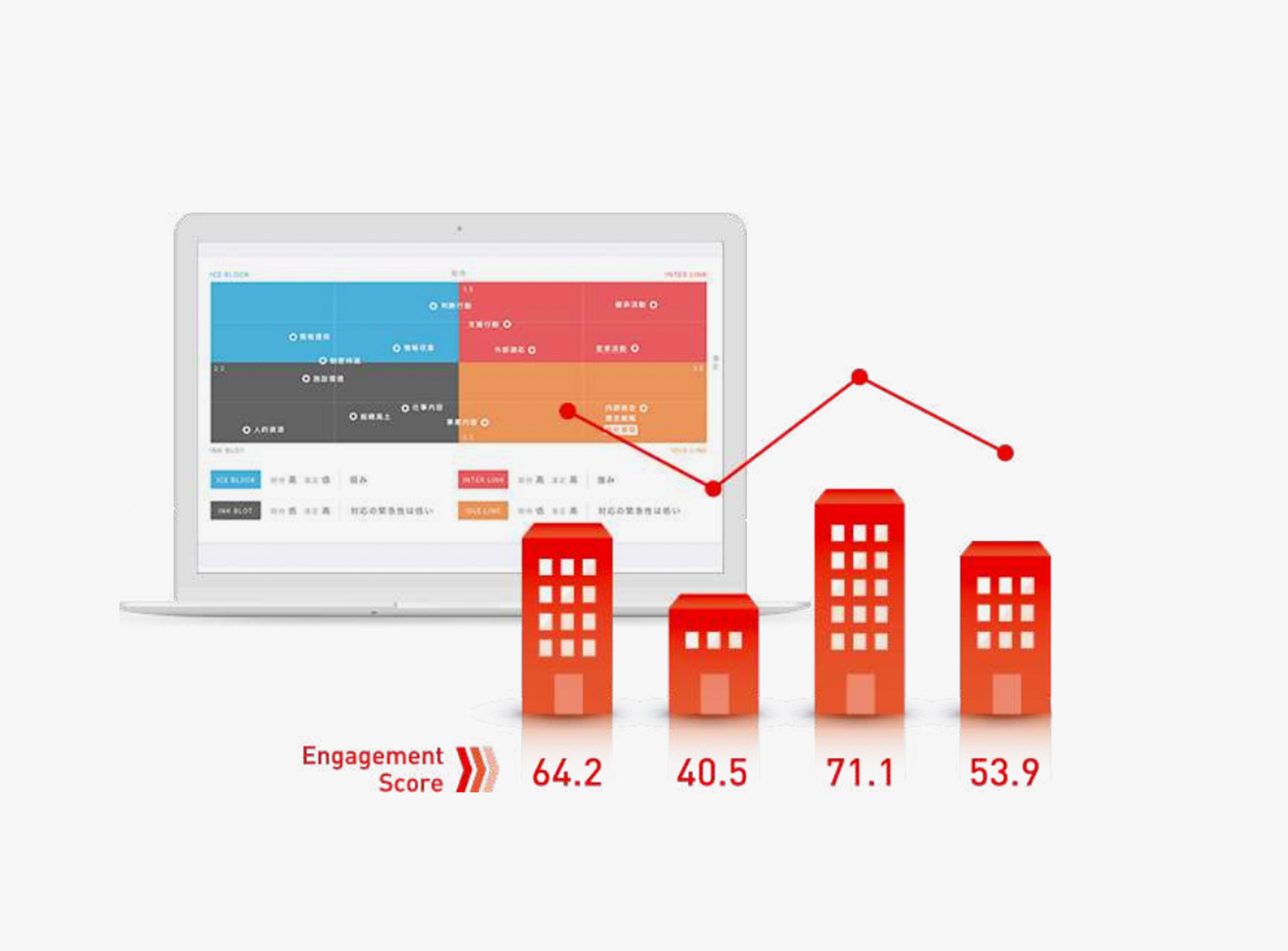 モチベーションサーベイとは社員のエンゲージメントを数値化し、会社・組織・チームの改善や改革をサポートする従業員満足度調査ツールです。