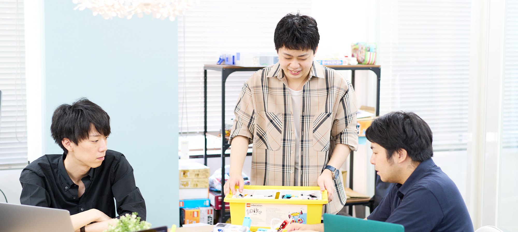 私は、現在教育開発部でロボットプログラミング教室「ロボ団」のレッスンで使用するロボットの考案・制作とロボ団岡本校で子どもたちにロボットプログラミングを教える講師を担当しています。また、WRO(World Robot Olympiad)というロボットプログラミンの世界大会の日本大会にロボ団の生徒が毎年挑戦しているんですが、そのコーチも担当しています。